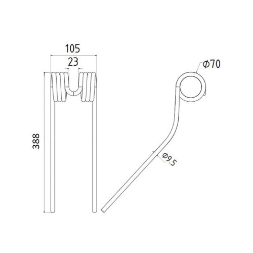 20 Stück Federzinken - Heuwender - Länge:385mm, Breite :105mm, Ø9.4mm
