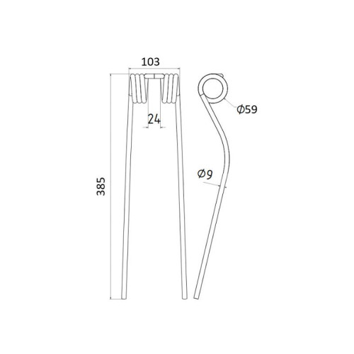 20 Stück Federzinken - Heuwender - Länge:388mm, Breite :103mm, Ø9mm