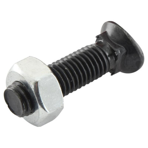 | Typ | Scharschraube mit ovalem Kopf, Vierkantansatz und Sechskantmutter |
