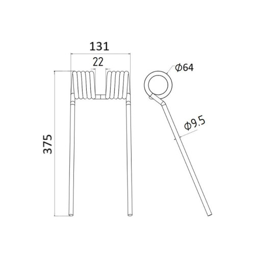 5 Stück Federzinken - Heuwender - Länge:375mm, Breite :130mm,Ø9.5mm