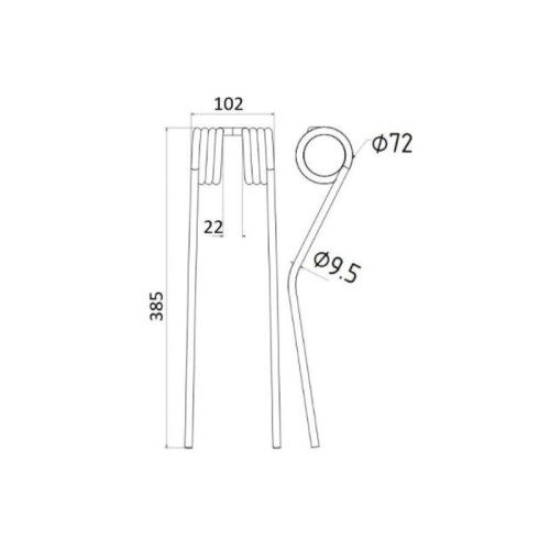 5 Stück Federzinken - Heuwender - Rechts und Links - Länge:385mm, Breite :102mm,Ø9.5mm