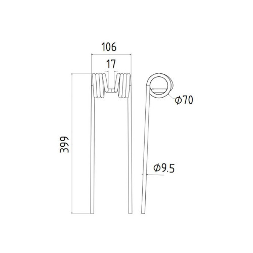 5 Stück Federzinken - Heuwender - Länge:395mm, Breite :115mm, Ø9.5mm