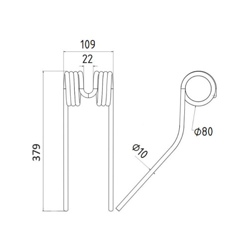 5 Stück Federzinken - Heuwender - Länge:380mm, Breite :105mm,Ø10mm