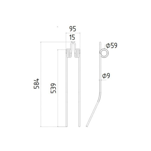 5 Stück Federzinken - Heuwender - Länge:585mm, Breite :93mm,Ø9mm