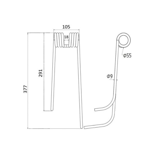 5 Stück Federzinken - Heuwender - Links - Länge:377mm, Breite :105mm, Ø9mm