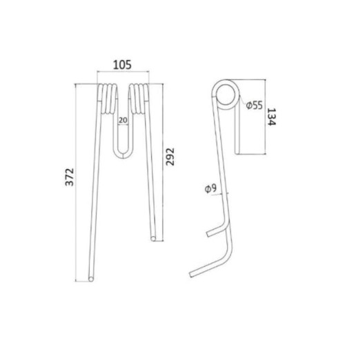 5 Stück Federzinken - Heuwender - Links - Länge:372mm, Breite :105mm, Ø9mm