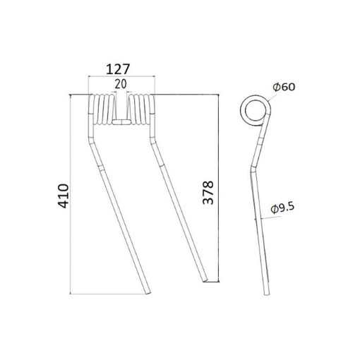 5 Stück Federzinken - Heuwender - Links - Länge:410mm, Breite :127mm,Ø9.5mm