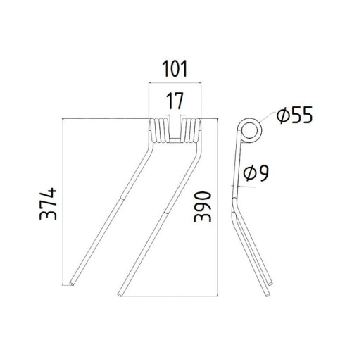 Lieferzeit: 3 - 5 Tage5 Stück Federzinken - Heuwender - Länge:395mm, Breite :115mm, Ø9.5mm AD: 70mmLiefe..