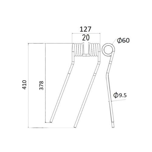 Lieferzeit: 3 - 5 Tage5 Stück Federzinken - Heuwender - Rechts - Länge:410mm, Breite :125mm,Ø9.5mm AD: 5..