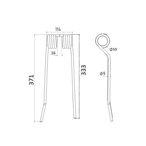 5 Stück Federzinken - Heuwender - Rechts - Länge:371mm, Breite :100mm,Ø9mm