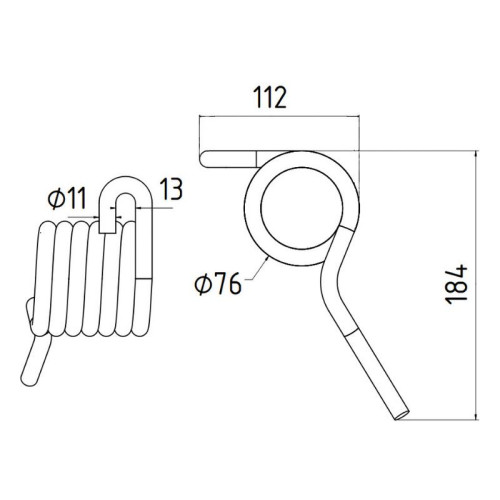 Federzinken - Heuwender - Rechts - Länge:184mm, Breite :14mm,Ø11mm