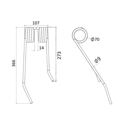 5 Stück Federzinken - Heuwender - Rechts - Länge:360mm, Breite :105mm,Ø9mm
