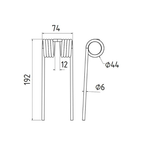 Lieferzeit: 3 - 5 Tage5 Stück Federzinken - Heuwender - Rechts - Länge:410mm, Breite :125mm,Ø9.5mm AD: 5..