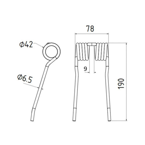 5 Stück Federzinken - Pick-up - Länge:190mm, Breite:78mm, Ø6.5mm - Ersatz für Claas
