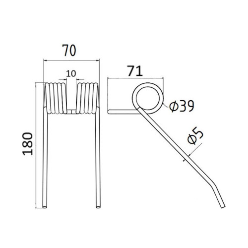 Lieferzeit: 3 - 5 Tage5 Stück Federzinken - Heuwender - Links - Länge:377mm, Breite :105mm, Ø9mm AD: 55m..
