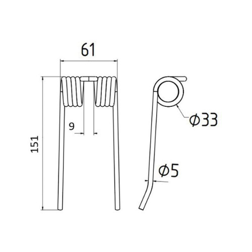 5 Stück Federzinken - Pick-up - Länge:149mm, Breite:61mm, Ø5mm - Ersatz für Krone - S.77451
