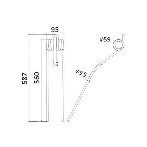 Nicht Vorrätig5 Stück Federzinken - Heuwender - Rechts und Links - Länge:394mm, Breite :110mm,Ø9...