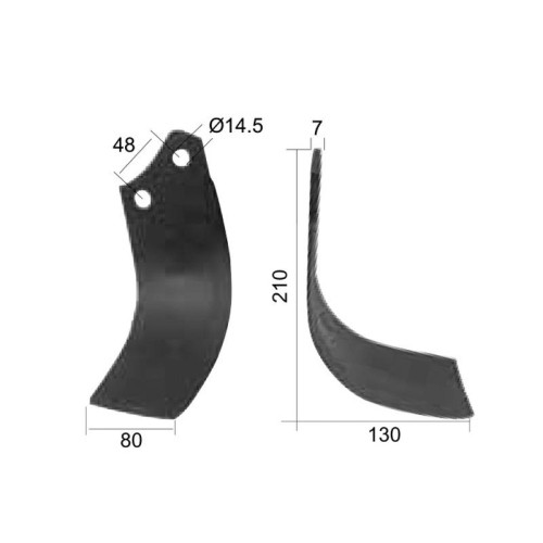 Fräsmesser Gebogen Links 80x7mm Höhe: 210mm. Lochabstand mittig: 48mm. Bohrung Ø: 14.5mm. Ersatz für Maschio