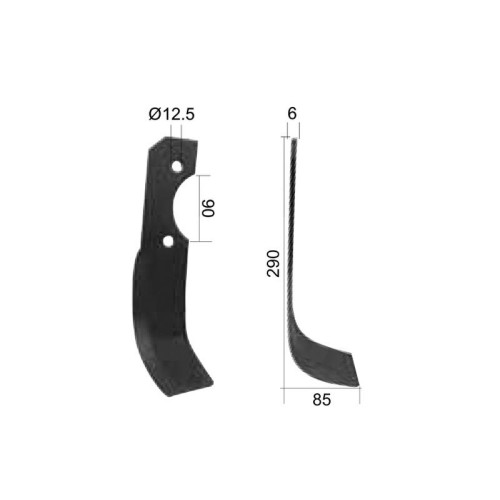 Fräsmesser Gebogen Rechts 60x6mm Höhe: 290mm. Lochabstand mittig: 90mm. Bohrung Ø: 12.5mm. Ersatz für Pegoraro