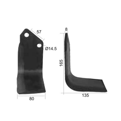 Fräsmesser Quadratisch Rechts 80x8mm Höhe: 165mm. Lochabstand mittig: 57mm. Bohrung Ø: 14.5mm. Ersatz für Krone, Kuhn