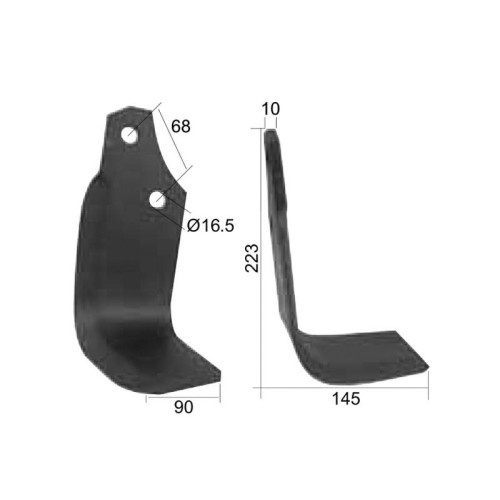 Fräsmesser Quadratisch Rechts 90x10mm Höhe: 223mm. Lochabstand mittig: 68mm. Bohrung Ø: 16.5mm. Ersatz für Maschio