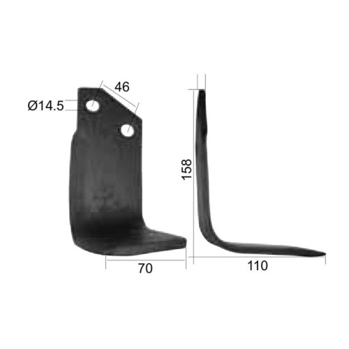 Fräsmesser Quadratisch Rechts 70x7mm Höhe: 158mm. Lochabstand mittig: 46mm. Bohrung Ø: 14.5mm. Ersatz für Sovema