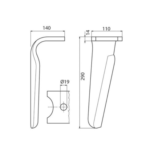 Kreiseleggenzinken 110x14x290mm Rechts. Lochabstand mittig: Bohrung Ø 19mm. Ersatz für Kuhn