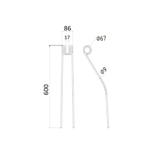 Lieferzeit: 3 - 5 Tage5 Stück Federzinken - Heuwender - Links - Länge:368mm, Breite :111mm, Ø9mm AD: 60m..