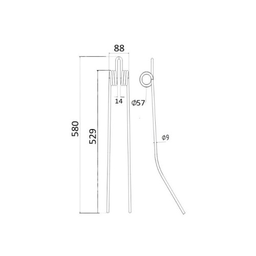 Lieferzeit: 3 - 5 Tage5 Stück Federzinken - Heuwender - Links - Länge:400mm, Breite :105mm, Ø9.5mm AD: 7..