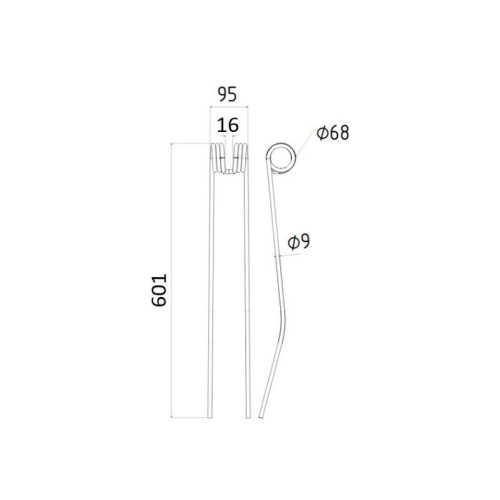 Lieferzeit: 3 - 5 Tage5 Stück Federzinken - Heuwender - Rechts und Links - Länge:385mm, Breite :98mm,Ø9.4..