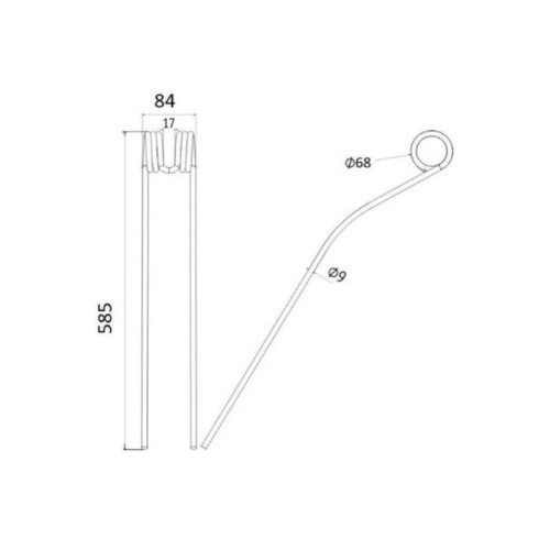 Lieferzeit: 3 - 5 Tage5 Stück Federzinken - Heuwender - Rechts und Links - Länge:385mm, Breite :98mm,Ø9.4..