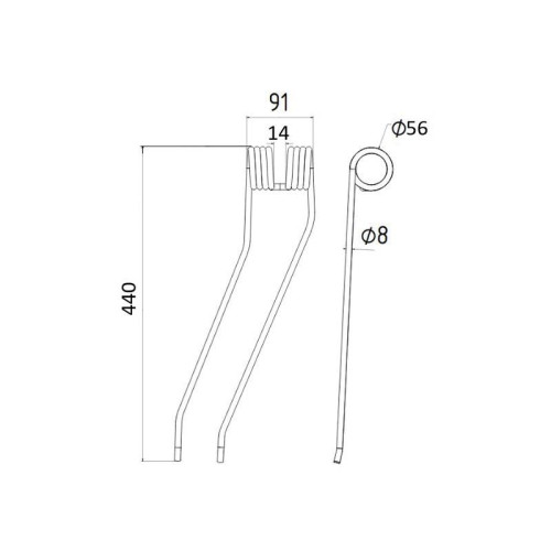 Schwaderzinken Links - Federzinken - Schwader - Links - Länge:441mm, Breite:92mm, Ø8mm - Ersatz für Fella, New Holland, Stoll