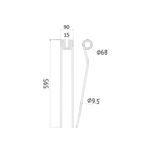 Lieferzeit: 3 - 5 Tage5 Stück Federzinken - Heuwender - Links - Länge:372mm, Breite :105mm, Ø9mm AD: 55m..