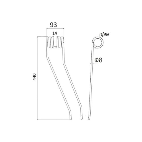 5x Federzinken - Schwader - Rechts - Länge:441mm, Breite:92mm, Ø8mm - Ersatz für Fella, New Holland, Stoll