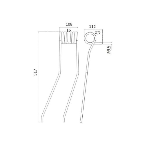 Lieferzeit: 3 - 5 Tage5 Stück Federzinken - Heuwender - Links - Länge:379mm, Breite :101mm, Ø9mm AD: 55m..