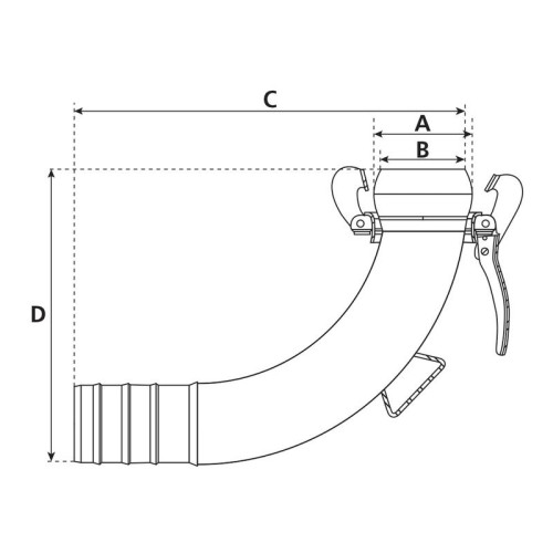 90 Grad Schlauchendstück 133mm (5) verzinkt - Güllefass Gülleauflieger Güllewagen