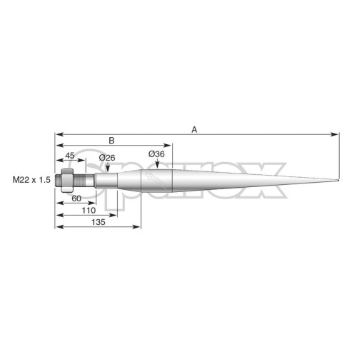 Frontladerzinke - Gerade 1,400mm, Gewindegröße: M22 x 1.5 (Stern)