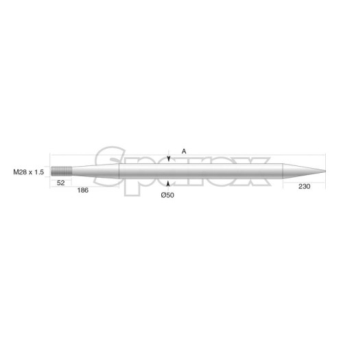 Frontladerzinke - Gerade 820mm, Gewindegröße: M28 x 1.5 (Rund)