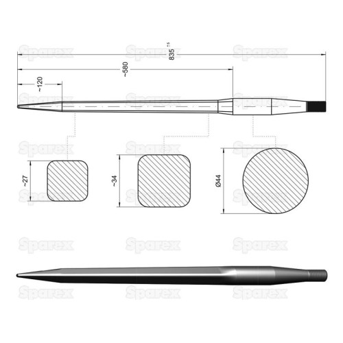 Frontladerzinke - Gerade 835mm, Gewindegröße: M27 x 1.5 (Quadratisch)