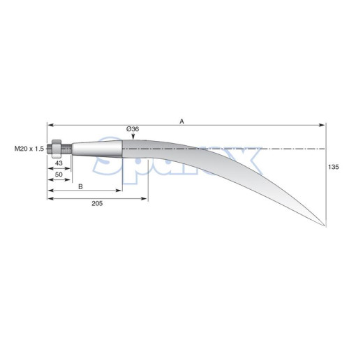 Frontladerzinken - gebogen 680mm, Gewindegröße: M20 x 1.5 Passend für: KK221194