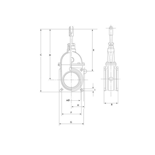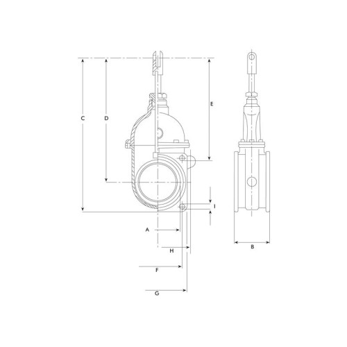Schieber mittelschwere Ausführung, eine Seite mit Flansch, eine Seite mit Gewindeanschluss