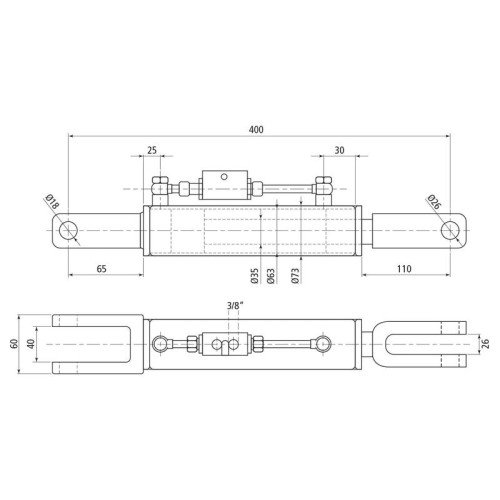 Hubstrebe hydraulisch (Ausgestattet mit: Schläuche), Min. Länge: 400mm, Zylinderbohrung: 63mm. S.113927