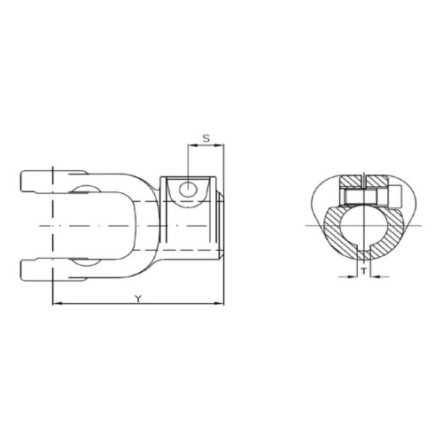 Klemmgabel für Profilwellen (Kreuzgelenk-Größe: 22 x 54,8mm) Bohrung Ø25mm, Schlüsselgröße: 8mm. S.6093