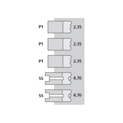 | Ringtyp | Top Ring: P1 - Parallel Faced Plain (2.35mm)2nd Ring: P1 - Parallel Faced Plain (2.35mm)3rd Ring: P1 - Parallel Faced Plain (2.35mm)4th Ring: SS - Standard Slotted (4.70mm)5th Ring: SS - Standard Slotted (4.70mm) |