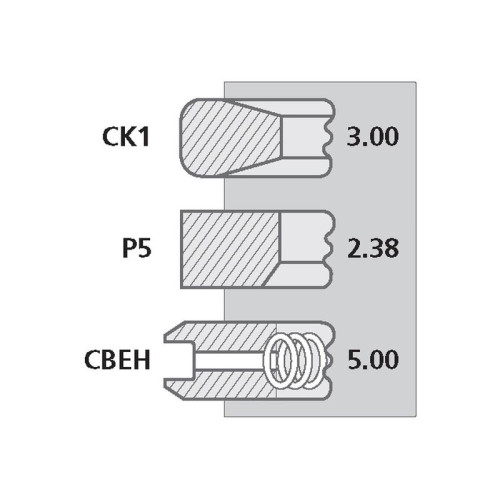 | Ringtyp | Top Ring: CK1 - Chrome Plated Keystone (3.00mm) 2nd Ring: P5 - Parallel Faced Internally Bevelled Bottom (2.38mm) 3rd Ring: CBEH - Chrome Plated Bevelled Edge with Helical Coil Spring (5.00mm) |