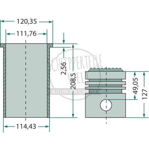 Kolbensatz passend für Fordson / Ford 2000 3000 3600 4600 5600 7000 7600 BSD 442