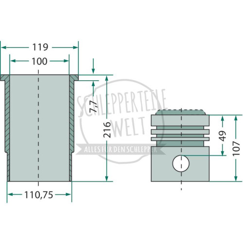 Kolbensatz passend für McCormick / IHC 353 523 624 733 824 946 1055 D-268