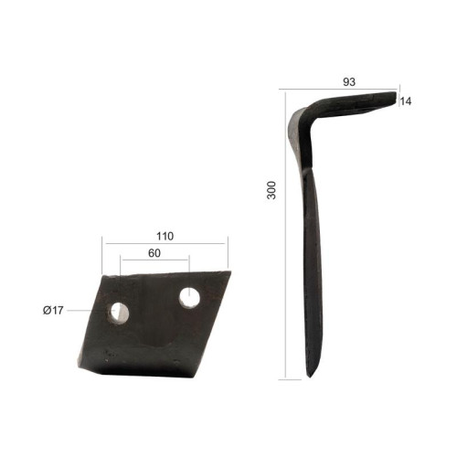 Kreiseleggenzinken 110x14x300mm Links. Lochabstand mittig: 60mm. Bohrung Ø 17mm - S.78217
