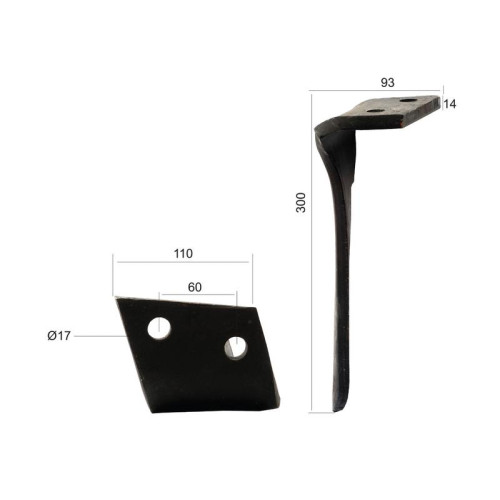 Striegel-Zinken Kreiselegge 320mm. Ersatz für Kuhn S.77255 Breite: 40mm. Bohrung Ø: 17m..
