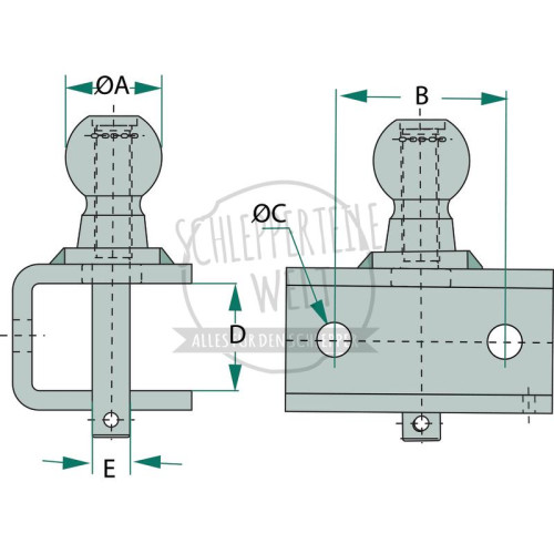 Kugelkopfkupplung A (mm) 50, B (mm) 89, C (mm) 16,5